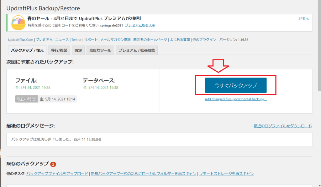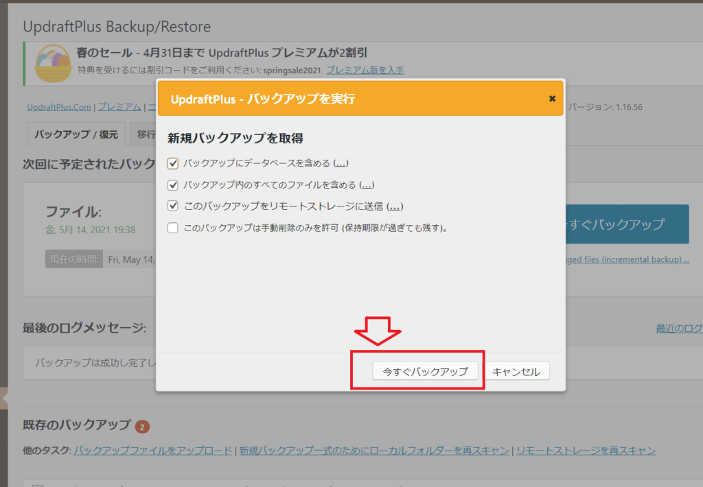 次に、「今すぐバックアップ」をクリックします。