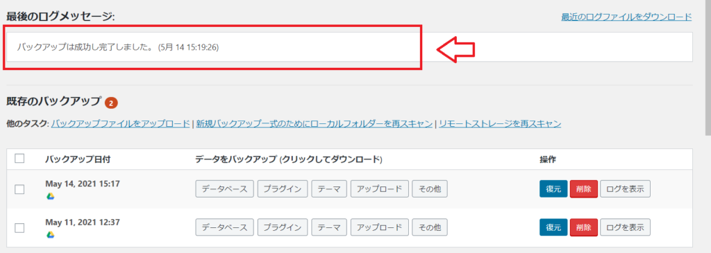 データのバックアップや復元が簡単にできるので、バックアップ用のプラグインをインストールしていない場合は、ぜひ入れておくのをおすすめします。