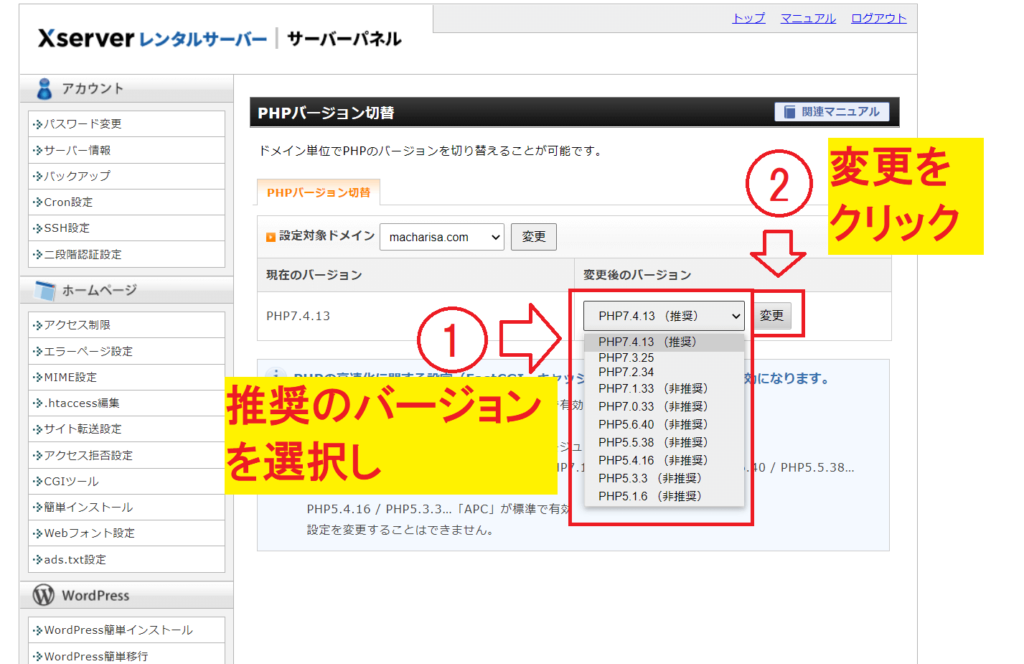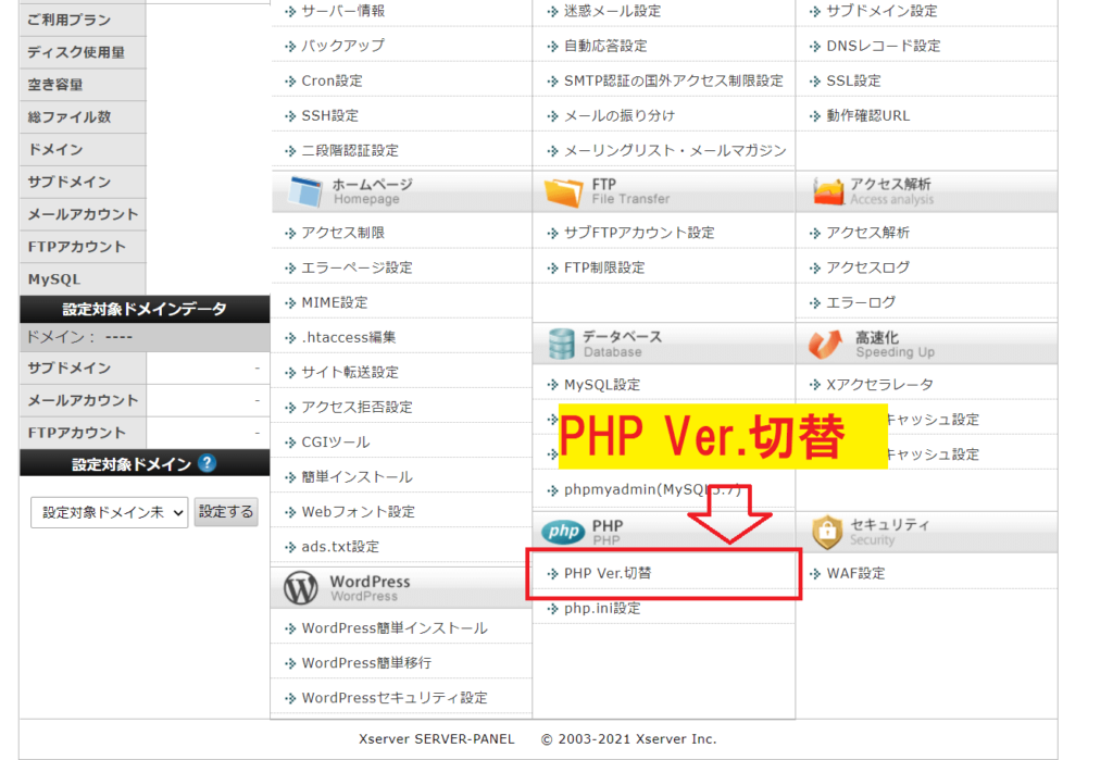 1.「PHP Ver.切替」をクリック